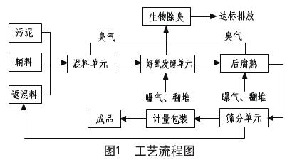 好氧發(fā)酵是實現(xiàn)污泥資源化利用的一種重要途徑。其優(yōu)點是投資少、工藝簡單、易操作、運行成本相對較低,但常規(guī)工藝臭味大、操作環(huán)境差,并且堆肥后農(nóng)用或其他土地利用受污泥中重金屬、有機物及N、P含量的限制。